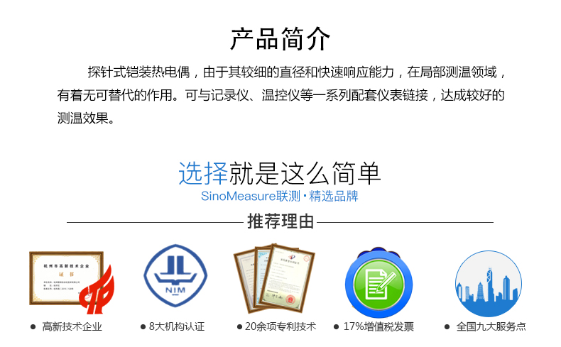 簡要描述:探針式鎧裝熱電偶,由于其較細的直徑和快速響應能力,在局部測溫領域, 有著無可替代的作用。可與記錄儀、溫控儀等一系列配套儀表鏈接,達成較好的測溫效果。